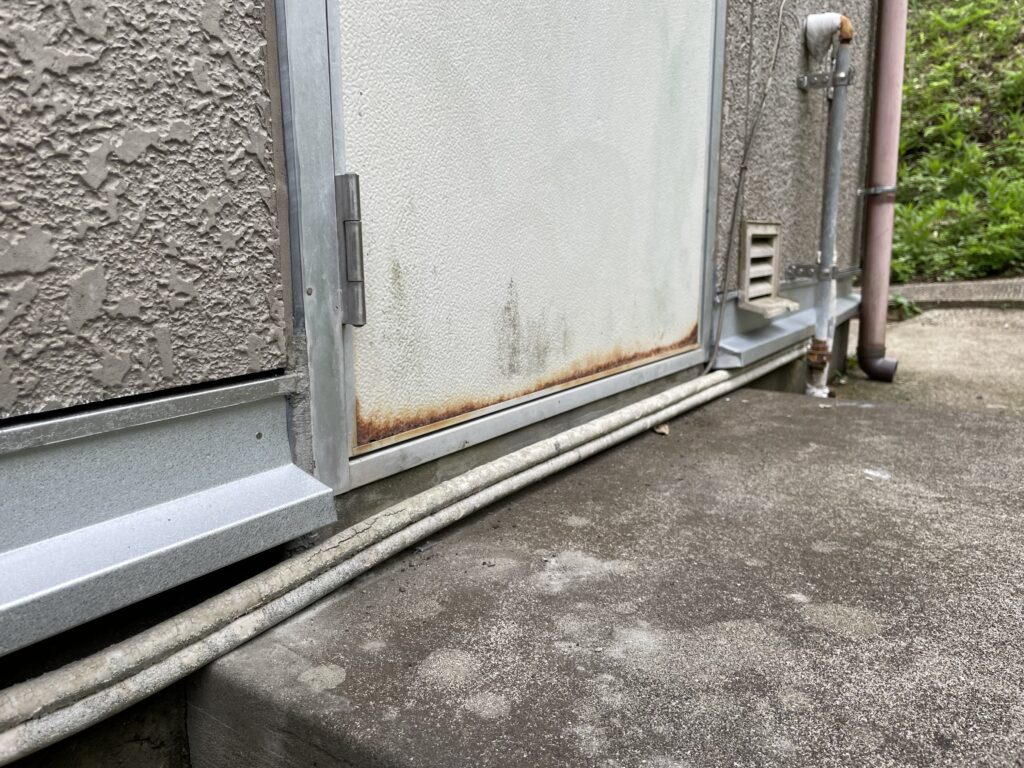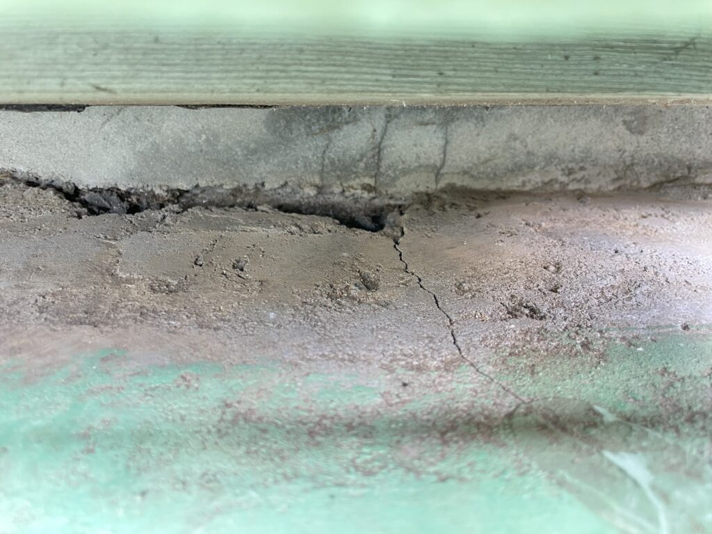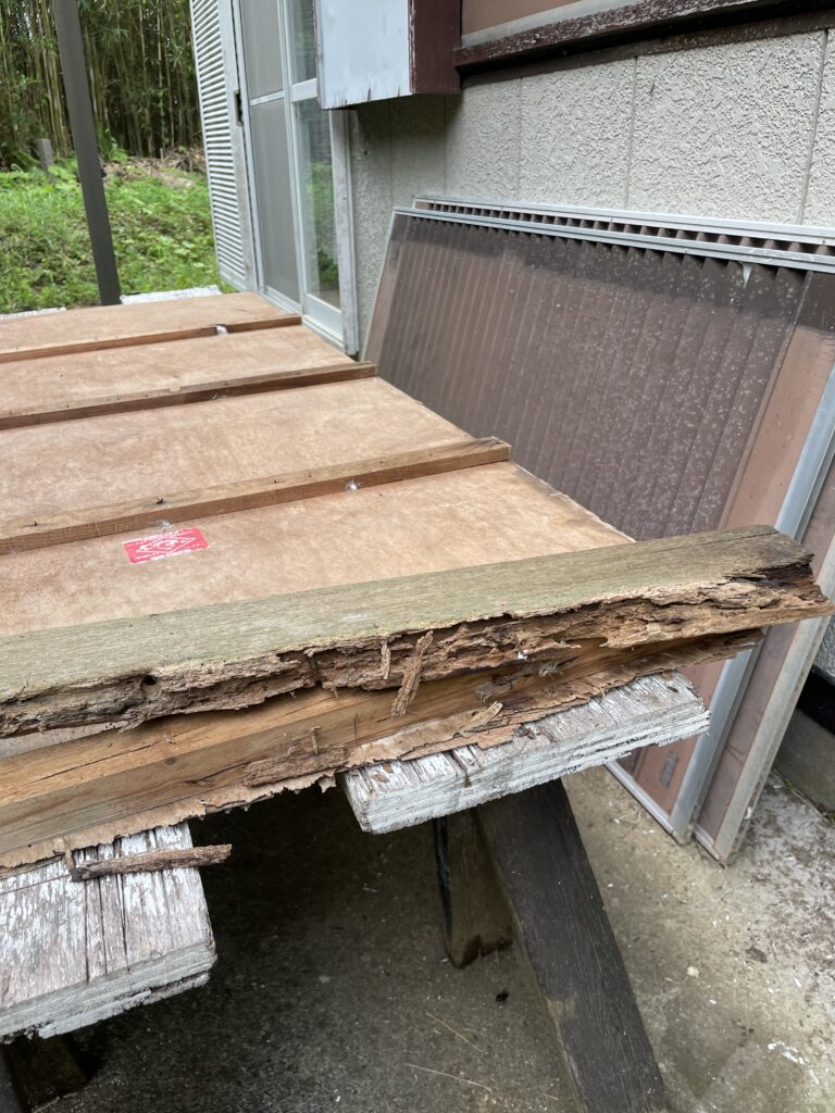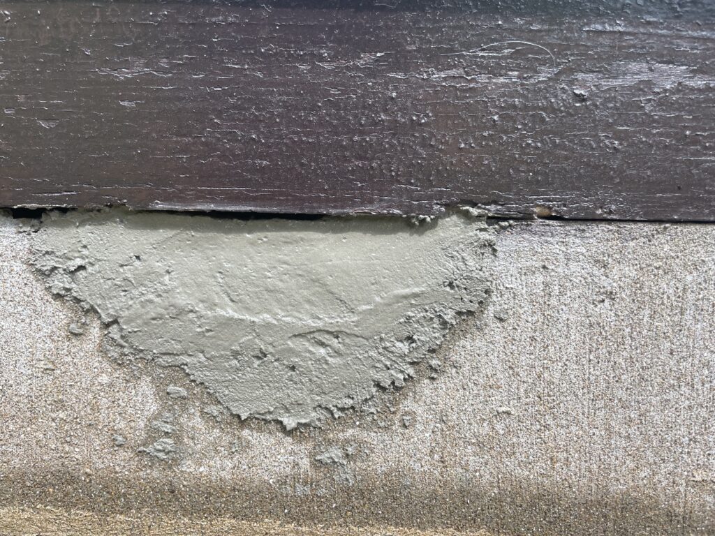 家の修繕 家の基礎と土台に雨水の浸水。 2025-06-12 4 コメント 土台水切が小さいので、基礎と土台に雨水が入り込み土台が腐食してます。 土台水切(銀色の部分)と土台カバーにペンキを塗りました。 欠損した土台は、耐水モルタルにて補修しました。 腐食した土台と土台カバーは、新しい木材にて補修しました。 土台の角部分に金物を取り付けます。 上から新しく土台カバーと土台水切(ガルバリウム製)を施工しました。 こちらのドアも補修必要ですね。 土台水切(銀色の金物)壁を、伝わって落ちてきた雨水を。家の外に排水します。
